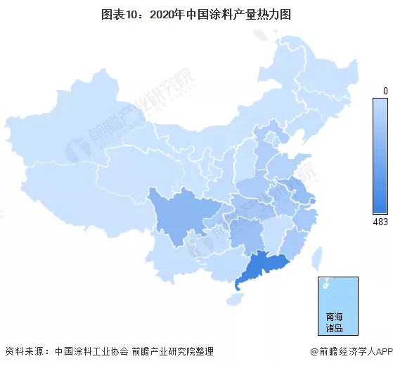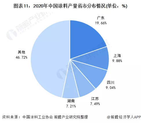 1、区域竞争:国内涂料生产集中在华东、华中、华南地区