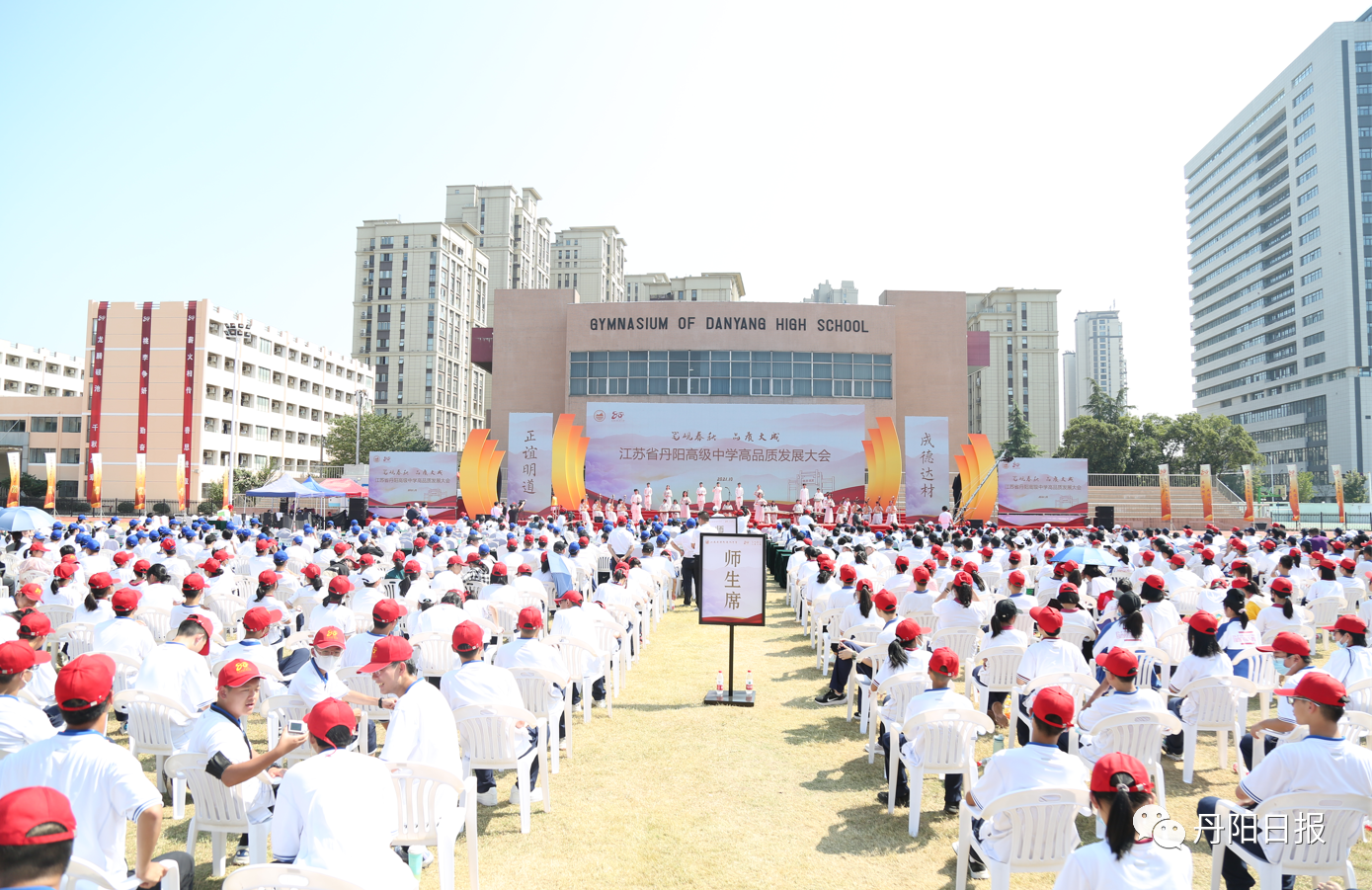 10月3日上午,江苏省丹阳高级中学举办高品质发展大会,来自全国各地的历届校友、宾朋及学校师生,相聚在美丽的笔架山下、砚池之畔,共享丹中建校80周年发展盛事、共叙丹中校友心系母校绵绵深情。